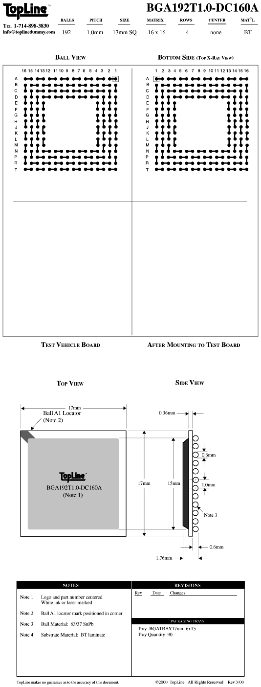 PBGA 316La Plastic Ball Grid Array 详细规格 |